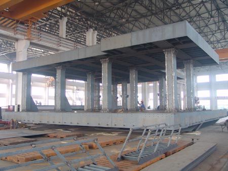 我公司生產(chǎn)的又一種新產(chǎn)品“海上石油鉆井用移動(dòng)平臺(tái)”第一臺(tái)套已基本制作完畢,定于10月8日發(fā)貨。