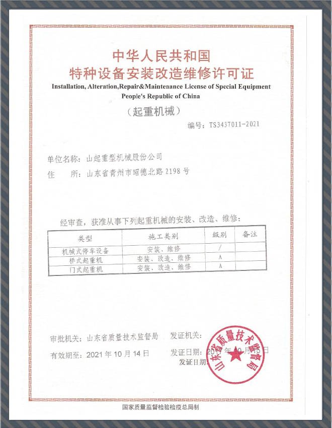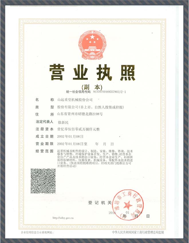 山起重型機(jī)械股份公司(原山東起重機(jī)廠有限公司)始建于1968年,原為國有中型一類企業(yè),是原機(jī)械工業(yè)部在山東省唯一定點(diǎn)生產(chǎn)橋式、門式起重機(jī)的專業(yè)生產(chǎn)廠。 1989年被首批命名為“國家二級企業(yè)”。2002年設(shè)立為有限公司,2005年改制為私營企業(yè),2009年底整體變更為股份公司,是山東省重點(diǎn)企業(yè)、省機(jī)械行業(yè)五十強(qiáng)和高新技術(shù)企業(yè),于2008年取得省級企業(yè)技術(shù)中心資格。