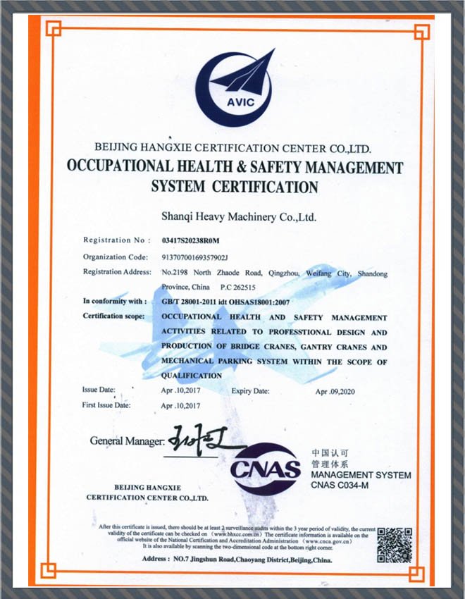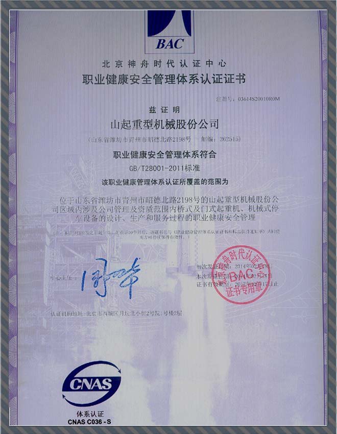 職業(yè)健康安全管理體系認(rèn)證證書英文