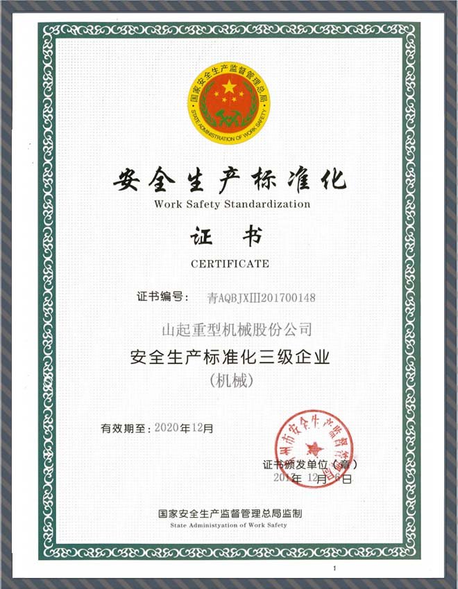 安全生產(chǎn)標(biāo)準(zhǔn)化證書